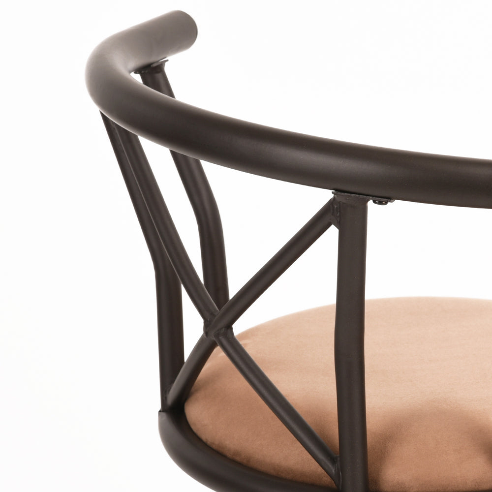Set mit 6 drehbaren Industrie-Barhockern mit brauner Stoffrückseite – HAILEY 24 ist ausverkauft und wird versendet, sobald es wieder vorrätig ist.