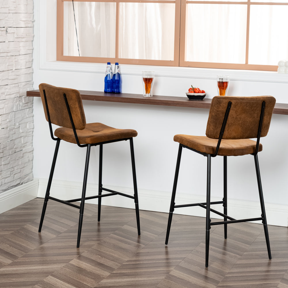 Set mit 2 industriellen Barhockern mit Wildlederrücken – POMONA BAR ist ausverkauft und wird versendet, sobald es wieder vorrätig ist.