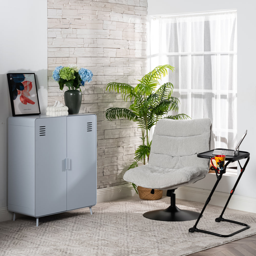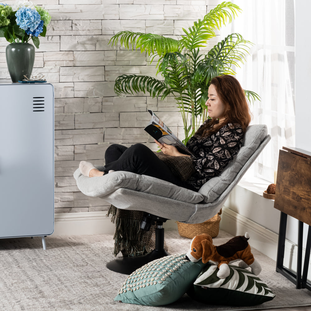 Verstellbarer Freizeitsessel aus grauem Chenille-Stoff, um 360° drehbar – LAMBERY ist ausverkauft und wird versendet, sobald es wieder vorrätig ist.