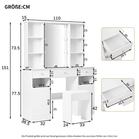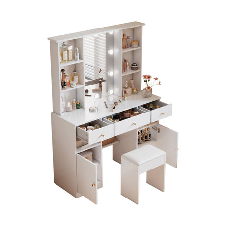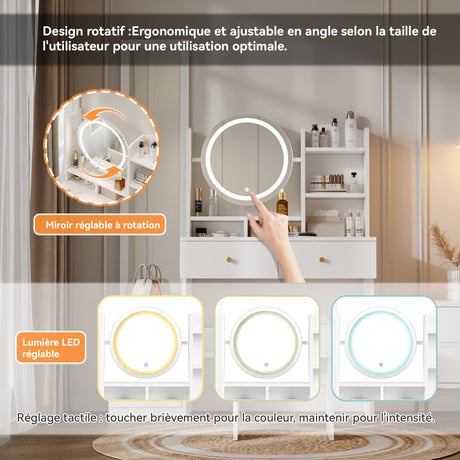 Moderner Friseur mit 3 -LED -LED -Spiegel, großer Stauraum und Seitenglasschrank, 120 x 40 x 90 cm