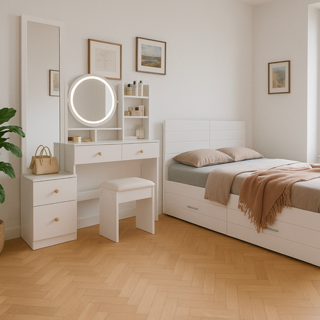 Multifunktioneller Sekretär mit Faltarbeit und großen Lagerräumen in Weiß
