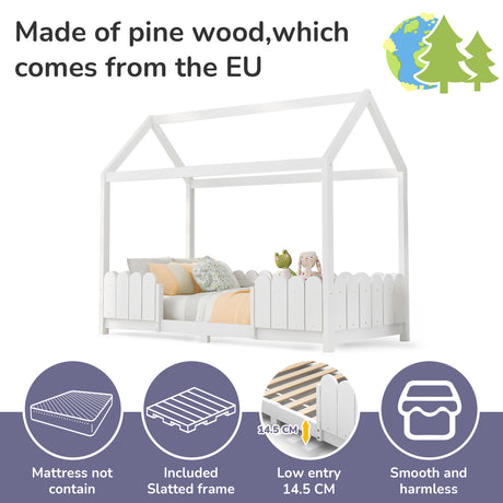 Kinder-Kabinenbett 90x200 cm aus massivem weißem Holz mit Absturzsicherung und Lattenrost