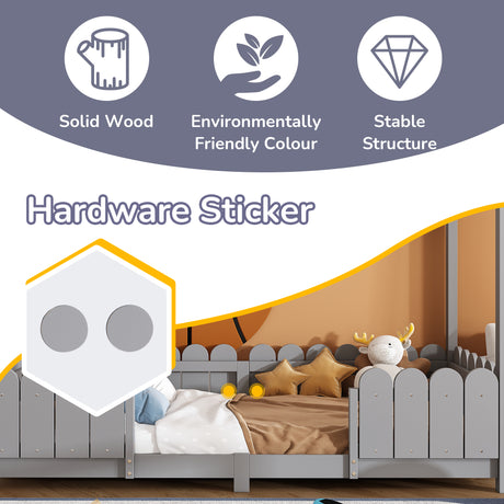 Kinder-Kabinenbett 90x200 cm aus massivem grauem Holz mit Absturzsicherung und Lattenrost