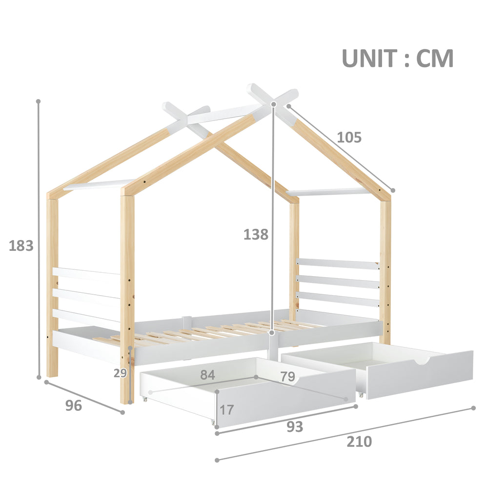 Stauraum: 2 geräumige Schubladen unter dem Bett integriert (84 x 79 x 9,5 cm)