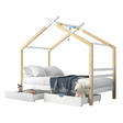 Dieses Hochbett aus Massivholz verwandelt Ihr Schlafzimmer in einen lustigen und funktionalen Raum. Mit seinem Spielhaus-Design und zwei integrierten Schubladen regt es die Kreativität der Kinder an und bietet gleichzeitig einen bequemen und sicheren Ruheplatz.