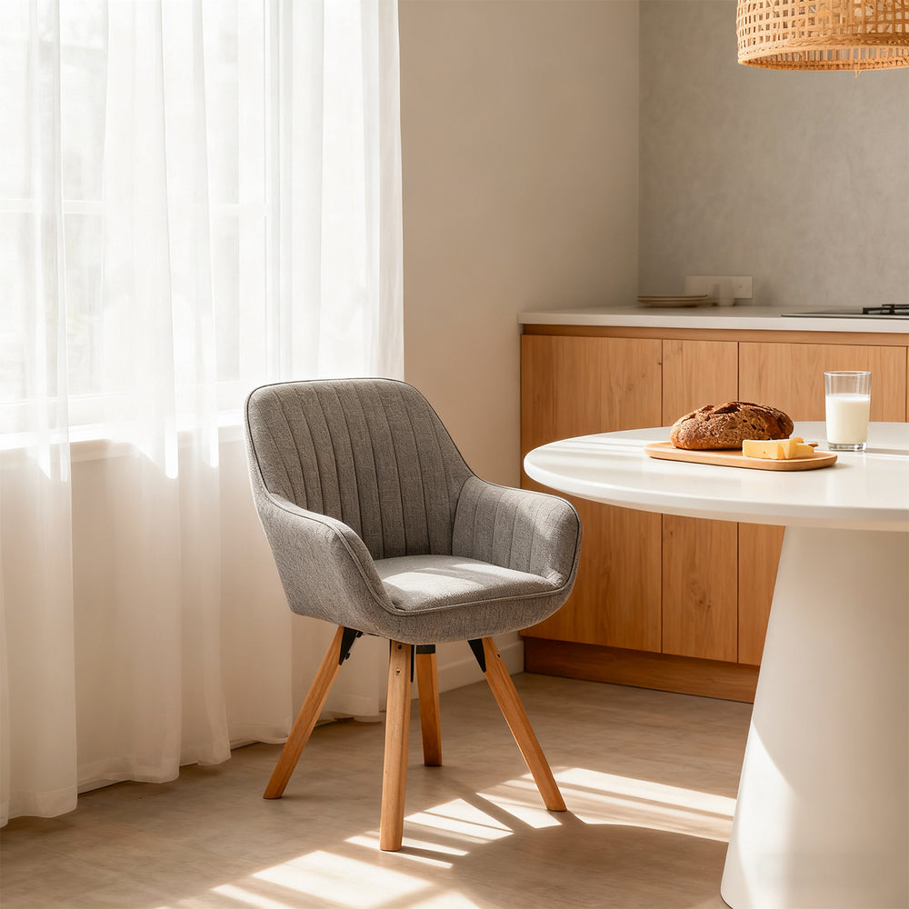 Bequemer Esszimmerstuhl aus grauem Stoff, 360° drehbar – CARSON FABRIC GREY