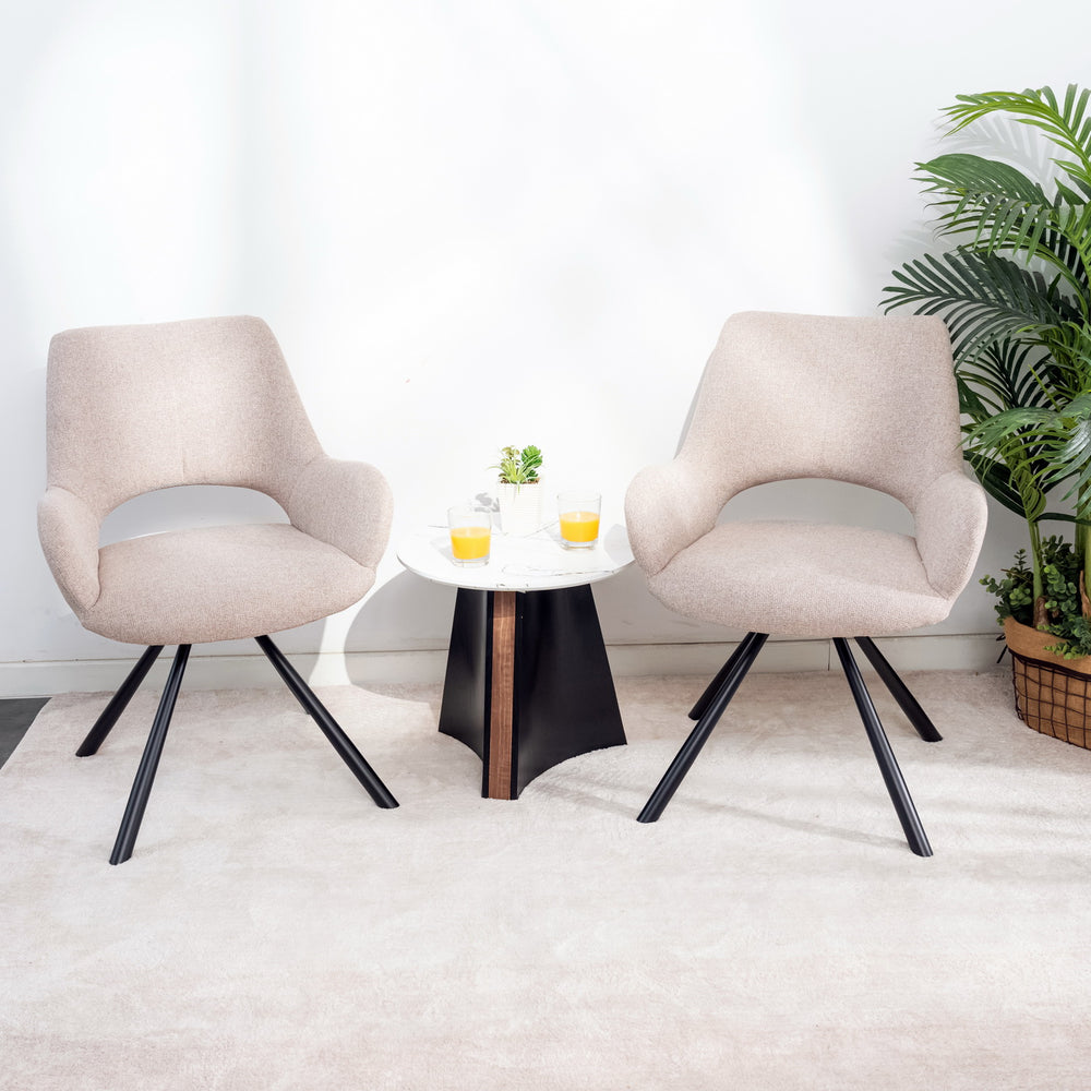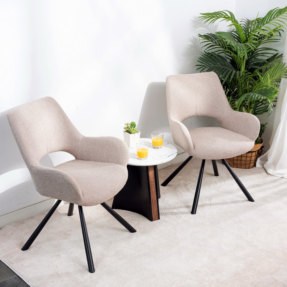 Set mit 6 skandinavischen Esszimmerstühlen mit Armlehnen aus beigem Stoff – BETH ist ausverkauft und wird versendet, sobald es wieder vorrätig ist.