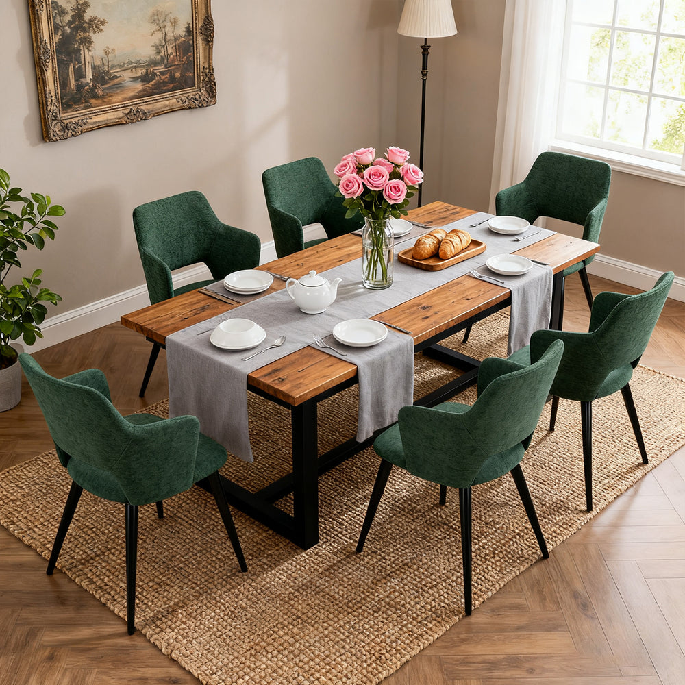 Set von 6 skandinavischen Esszimmern mit grünen Stoff Armlehnen - Akanji