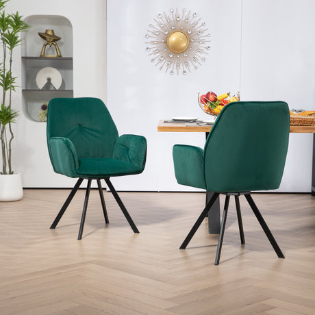 Set aus 2 bequemen Esszimmerstühlen aus grünem Stoff mit Armlehnen – KALBGRÜN