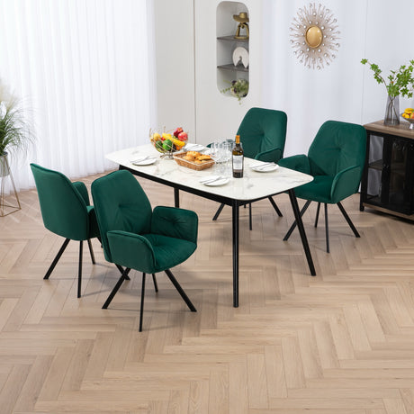 Set aus 4 bequemen Esszimmerstühlen aus grünem Stoff und Wildleder mit Armlehnen – CALF SUEDE+GREEN