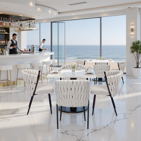 Lot de 6 chaises de salle à manger modernes en tissu effet laine blanche avec pieds dorés
