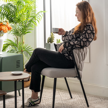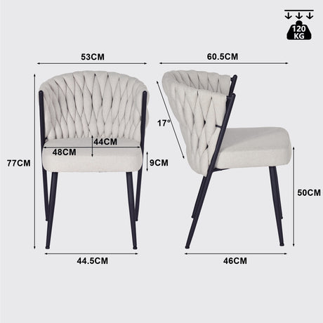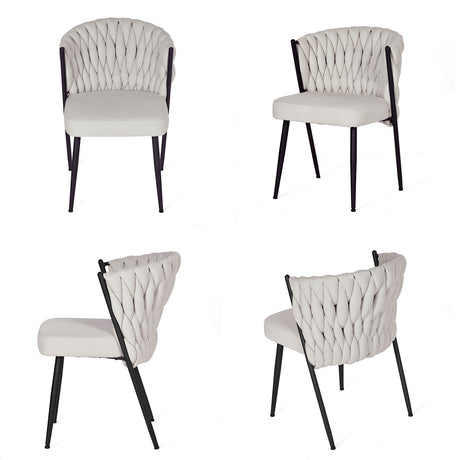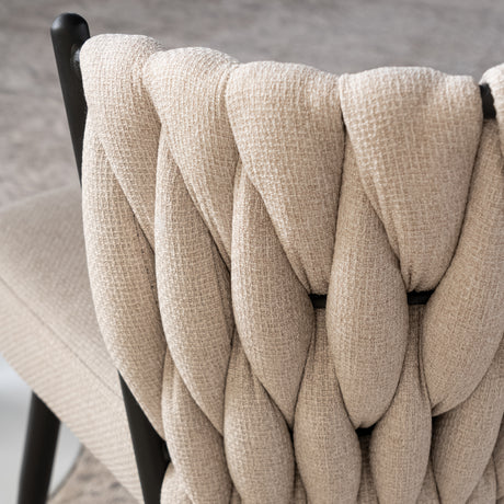 Set aus 2 Esszimmerstühlen im Industriestil mit geflochtener Rückenlehne aus beigem Stoff – MILIANA