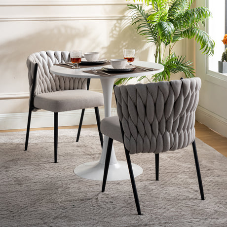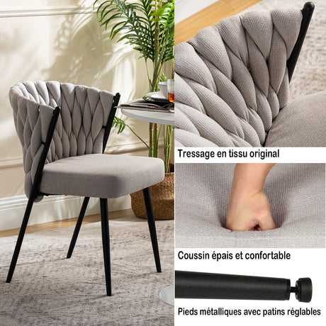 Lot de 2 chaises de salle à manger modernes en velours gris avec dossier en rotin et pieds en métal