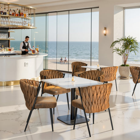 Set von 4 Esszimmerstühlen Retro -Vintage -Stil mit geflochtener Datei in Brown Suede - Miliana