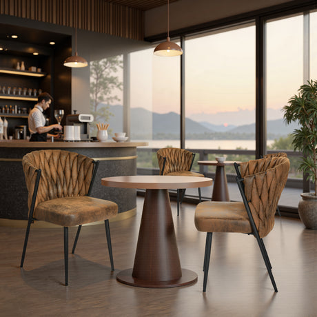 Runder Tisch in Walnussoptik Ø80 cm mit 4 schwarzen Samtstühlen, moderner und komfortabler Stil