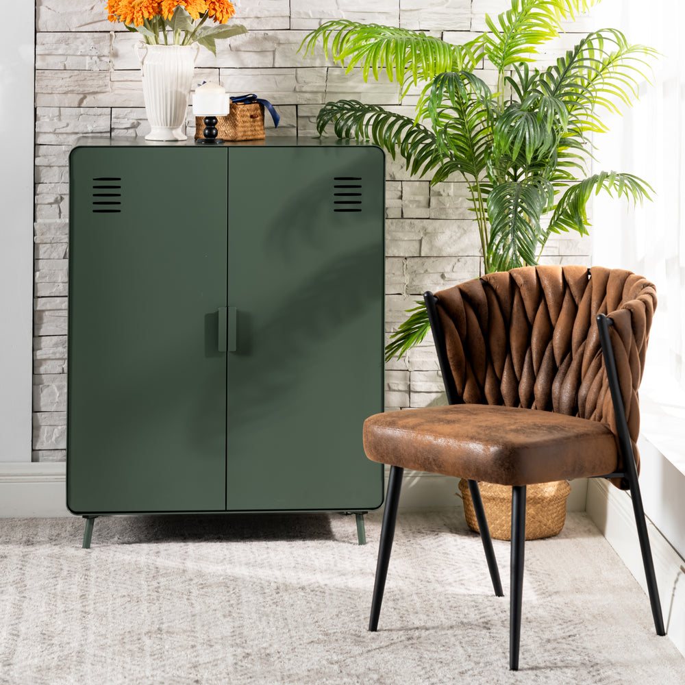 Grüner Metallschrank/Spind im Industriestil mit Regalen und 2 Türen – WALNUSS ist ausverkauft und wird versendet, sobald es wieder vorrätig ist.