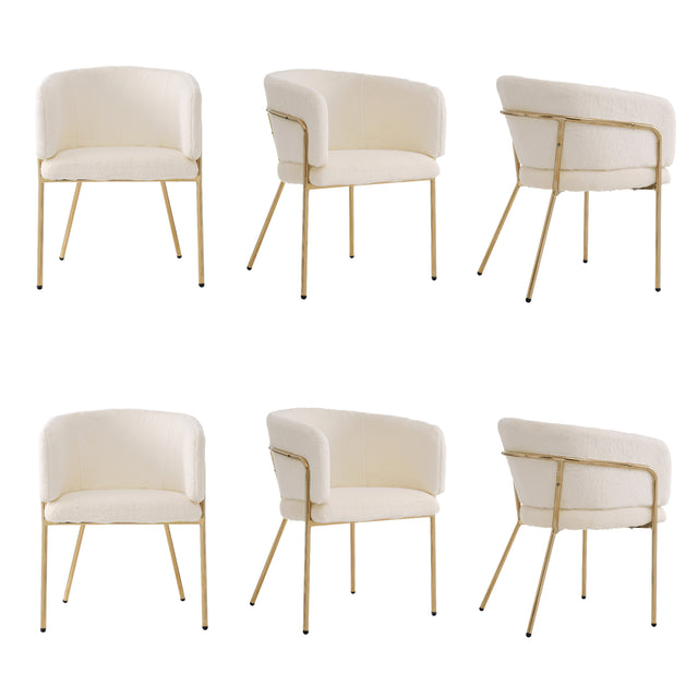 Lot de 6 chaise de loisirs individuelle en imitation de velours de lapin Chaise élégante à quatre pieds en métal beige pour salon chambre à coucher et salle à manger