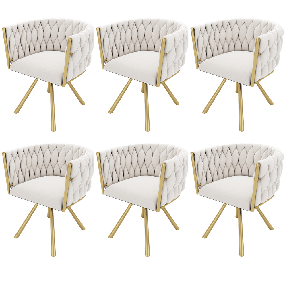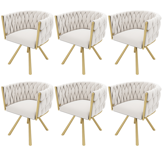 Lot de 6 chaises pivotantes de salle à manger en velours beige avec pieds en métal doré