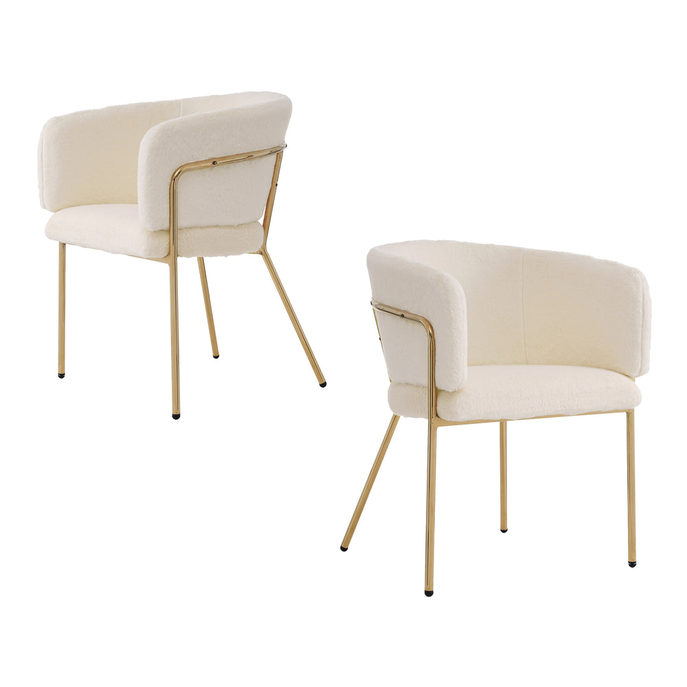 Lot de 2 chaise de loisirs individuelle en imitation de velours de lapin Chaise élégante à quatre pieds en métal beige pour salon chambre à coucher et salle à manger
