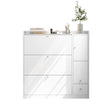 Weißer Schuhschrank 119x24x122 cm mit 3 kippbaren Schubladen, Aufbewahrungsschublade, verstellbaren Einlegeböden und Klappbank