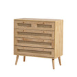 Commode classique à 3 tiroirs, avec dessus de tiroir en rotin, couvercle inférieur rabattable, poignée en métal doré et pieds en bois, offrant un espace de rangement pour le salon et la chambre