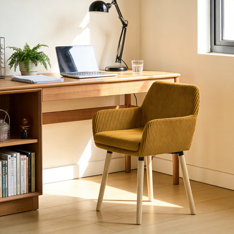 Set of 6 Comfortable Green Fabric Dining Chairs with Armrests - CALF GREEN 6PCS