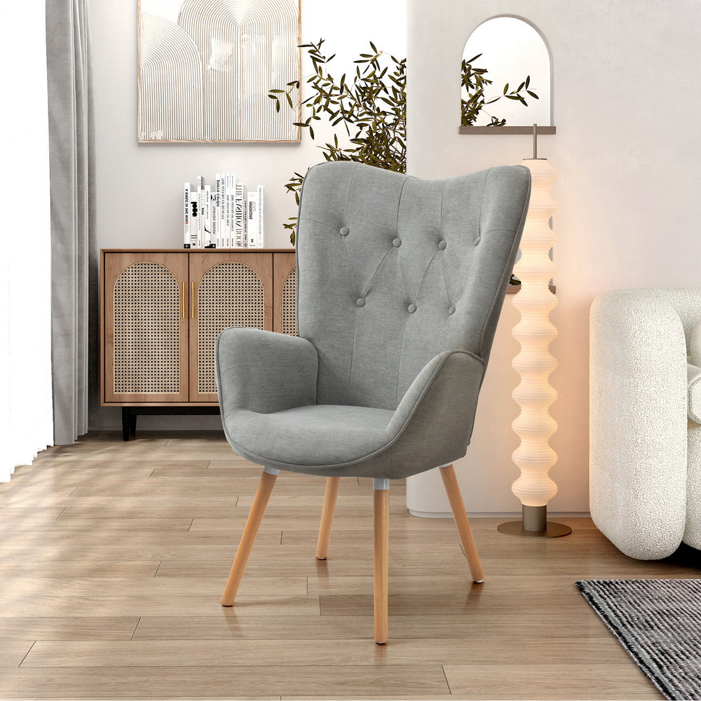 This Scandinavian armchair combines comfort and elegance. With its soft fabric upholstery and armrests, it will stylishly blend into your home. Its natural wood frame gives it a warm and authentic touch. Perfect for relaxing, reading, or working, this armchair will quickly become a staple in your living space.
