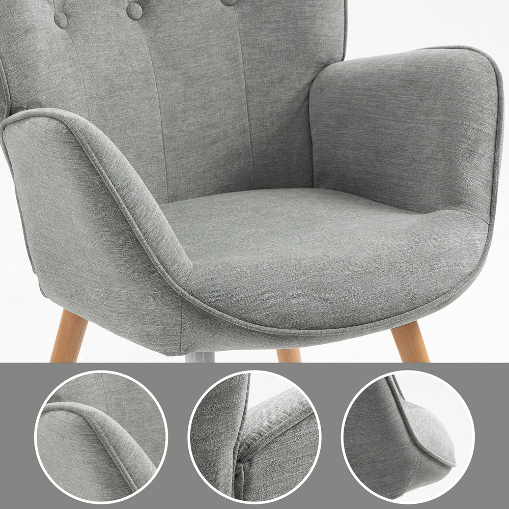 Scandinavian armchair with armrests in padded gray fabric - kas