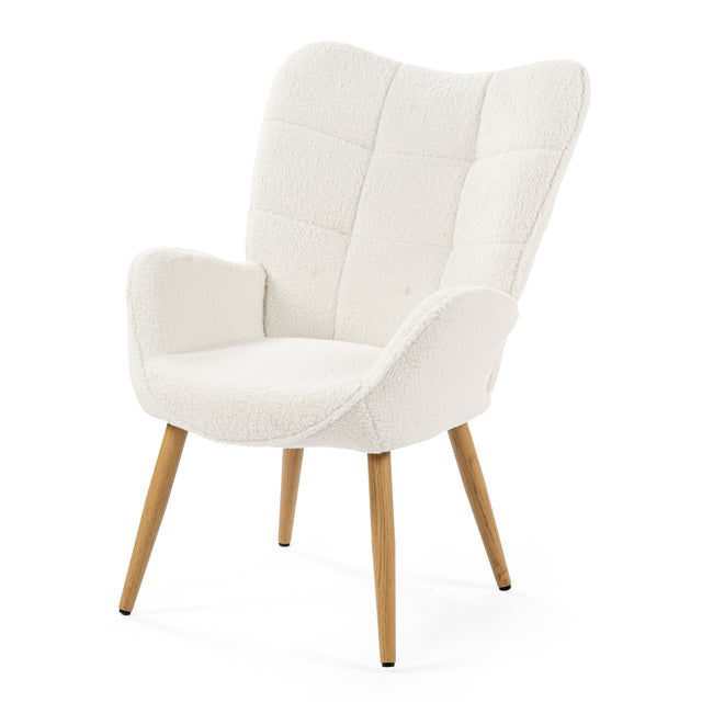 Scandinavian armchair with armrests in sheep sheeptow fabric with stitching - Kanas