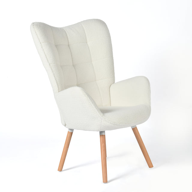 Scandinavian armchair with armrests in sheep sheeptock fabric beige with stitching - Funkel is out of stock and will be shipped as soon as it is back in stock.