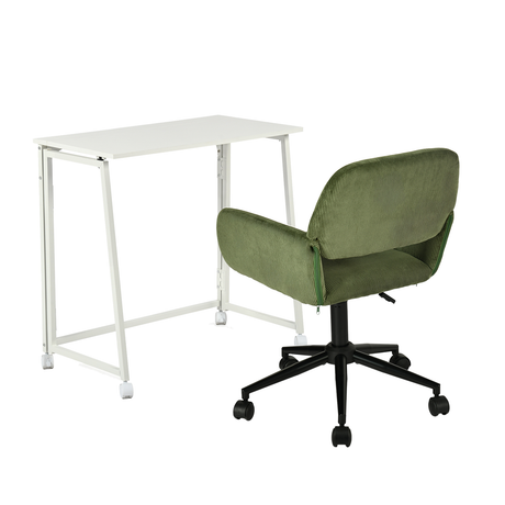 Set with White foldable desk on wheels and olive green velvet velvet chair - Ascoli & Ross