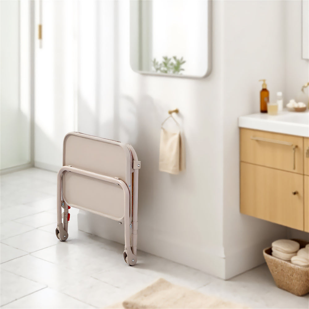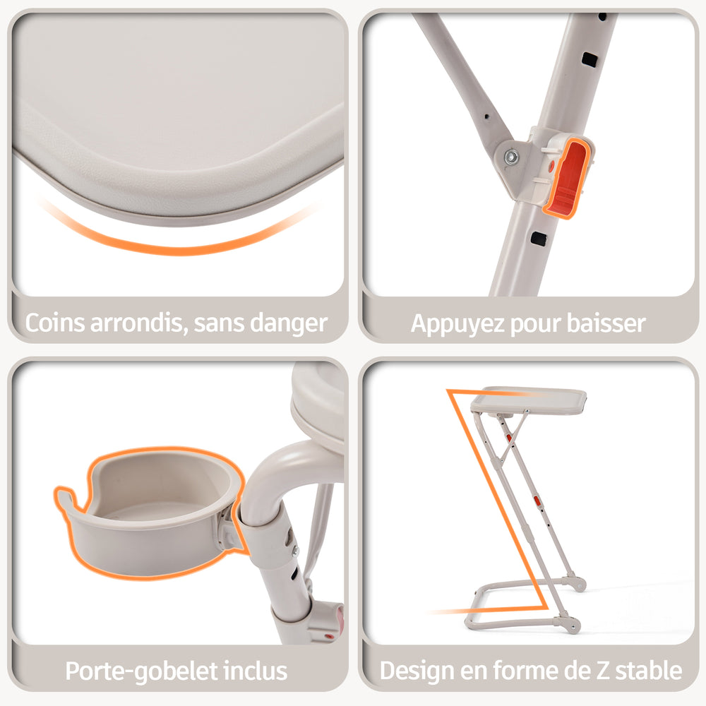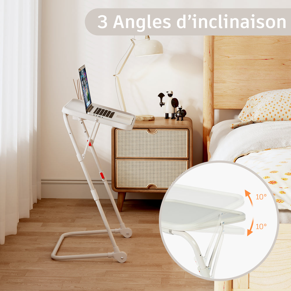 Lightweight, foldable, and functional, this white BASELINE end table is a practical solution for small spaces or working from home. With its height-adjustable and tilting top, it's perfect for all your activities: working from home, dining, reading, or relaxing in bed.