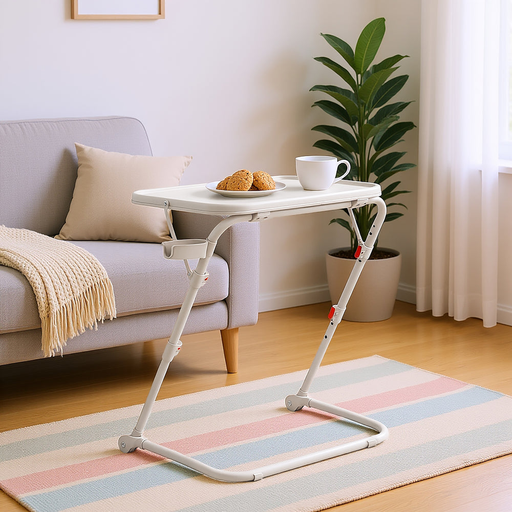 Foldable side table for laptop, adjustable sofa adjustable sofa with tilting tray and cup holder-baseline